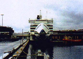 One of the viewers of the 'EFTERLYS' program reported that he saw the ESTONIA in July 1994 at her berth in Stockholm with open visor and open bow ramp, which was categorically denied by N&T, ESCO and the JAIC members.The following picture proves it. It was made by a German tourist in July 1994.